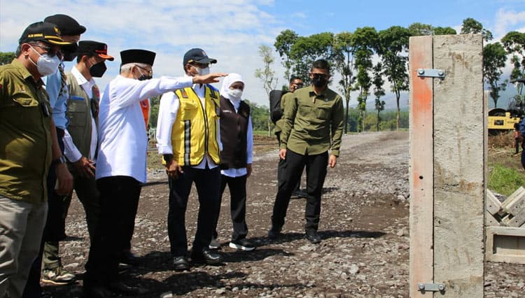 TIMES Madura/Sekjen PUPR RI Mohammad Zainal Fatah dampingi Wapres RI KH Ma'ruf Amin meninjau lokasi pembangunan Hunian Sementara (Huntara) bagi korban terdampak erupsi Gunung Semeru di Desa Sumbermujur, Kecamatan Candipuro, Kabupaten Lumajang.
